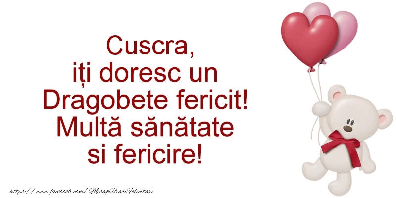 Cu un design ales cu grijă, acestă felicitare cu ursuleț cu inimioare pentru fete din colecția noastră de felicitari de Dragobete va transmite cu succes urările tale cele mai calde și cele mai profunde pentru cuscra ta.