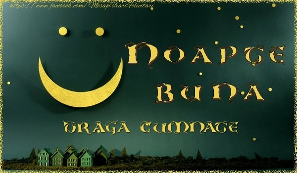 Această imagine de noapte buna cu peisaj cu lună și stele care zâmbesc are dimensiunile 600px x 350px și textul Noapte buna cumnate.