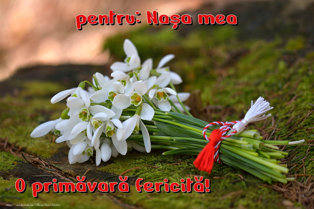 O primăvară fericită pentru Nașa mea! - imagine cu buchet de ghiocei legați cu șnur alb-roșu | Felicitări de 1 Martie